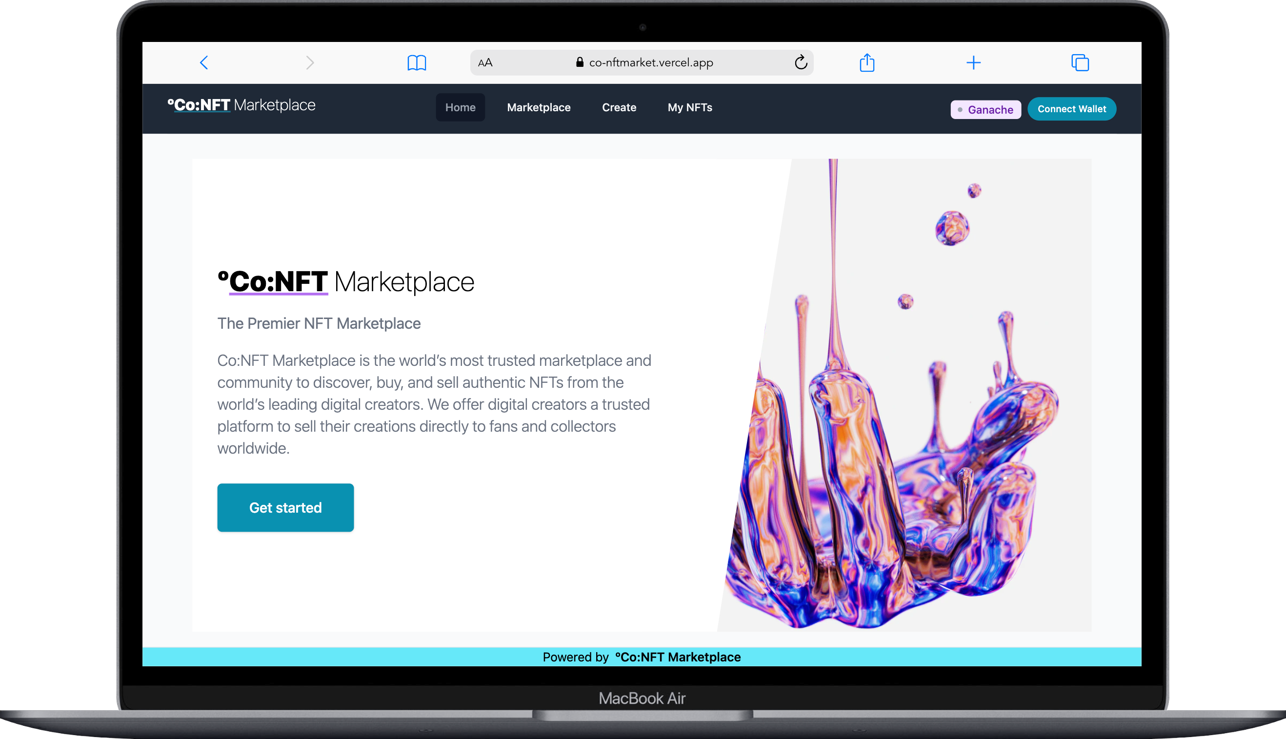 - Made with NodeJS, Truffle, Solidity, ReactJS, NextJS, Piñata, Ether and Vercel.